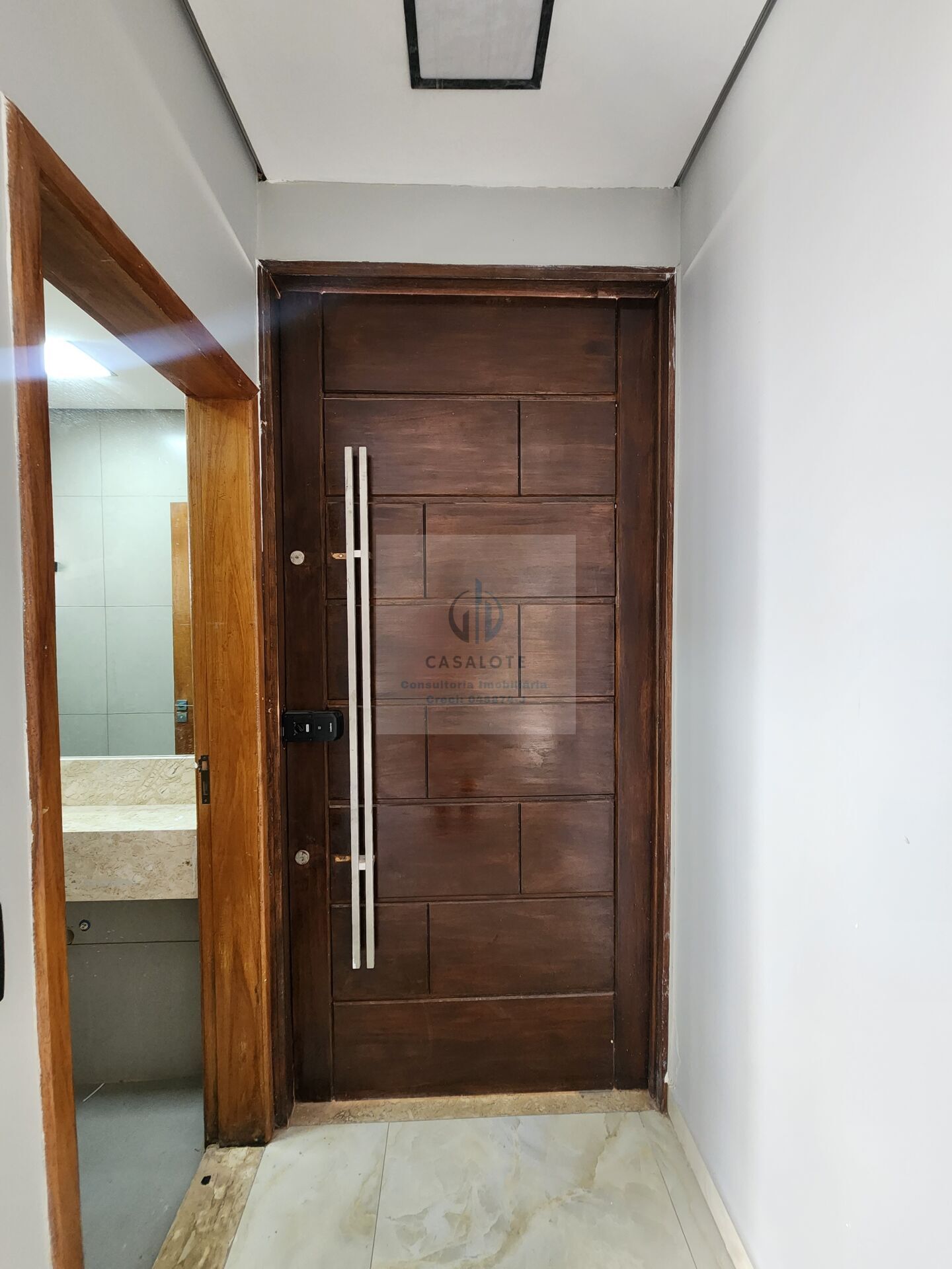 Obs.: Porta de entrada pivotante em madeira com fechadura digital.